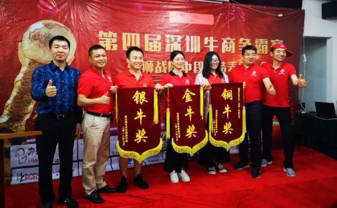 深圳市單仁資訊有限公司總經(jīng)理?xiàng)罟?、深圳市牛商?zhēng)霸賽總司令石華、雄獅戰(zhàn)隊(duì)司令劉海峰、政委王小峰和金、銀、銅牛獎(jiǎng)企業(yè)合影!