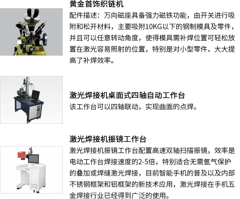 通發(fā)激光研發(fā)針對(duì)配合黃金織鏈機(jī)、K金制鏈機(jī)、首飾織鏈機(jī)、項(xiàng)鏈織鏈機(jī)的TFL-40PF自動(dòng)光纖激光焊接機(jī),焊接機(jī)采用能量反饋技術(shù),光點(diǎn)穩(wěn)定,能量強(qiáng)勁,便與安裝,實(shí)現(xiàn)一環(huán)一焊的功能,確保金鏈的耐拉強(qiáng)度。本激光焊機(jī)實(shí)現(xiàn)了風(fēng)冷一體的小型化結(jié)構(gòu)。適用于各種生產(chǎn)場(chǎng)所。