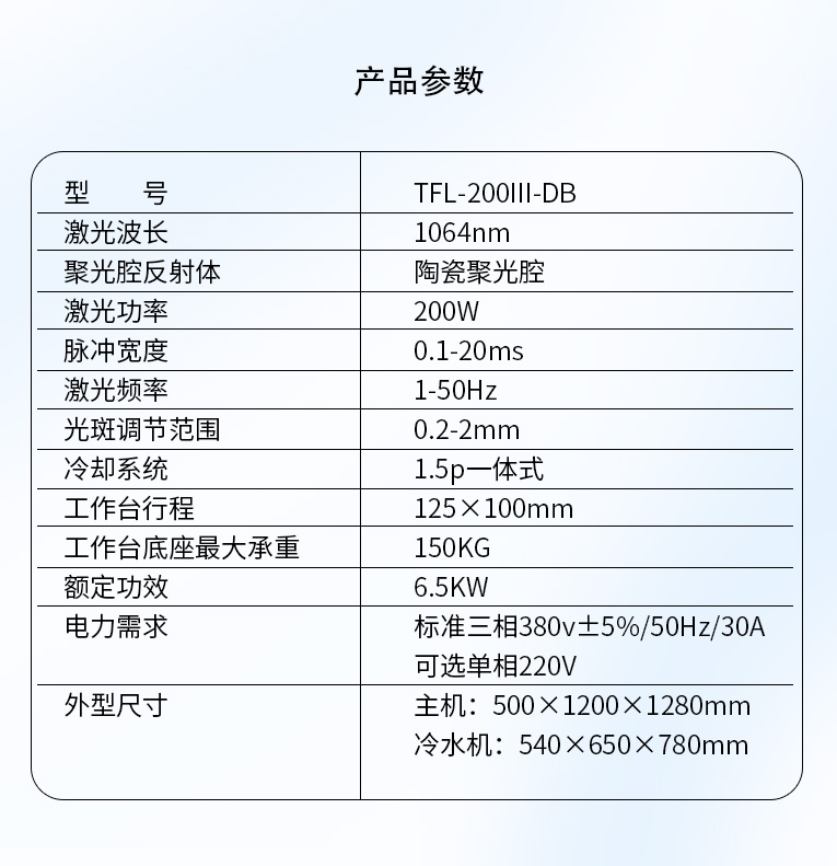 | 激光功率 | 200W |