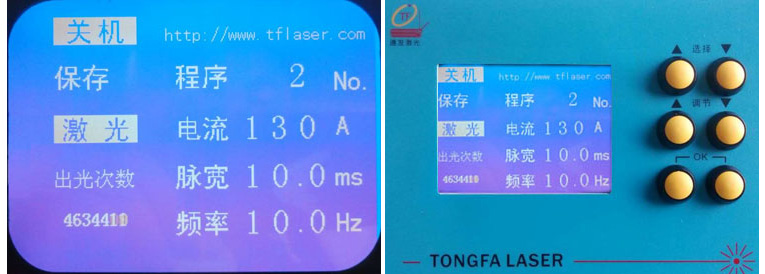 2、本首飾激光點(diǎn)焊機(jī)軟件可選擇中文或者英文界面,對不同加工位置選擇相應(yīng)的激光焊接加工參數(shù)。由選擇按鈕移動光標(biāo)到相應(yīng)的參數(shù)位置,由調(diào)節(jié)按鈕調(diào)節(jié)參數(shù)的大??;