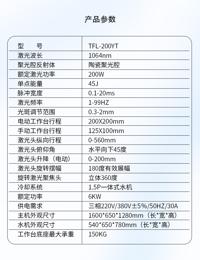 通發(fā)激光一體式模具激光焊機TFL-200YT/TFL-400YT是一款多種功能融合一體的新型模具激光焊接機,針對特大型塑料模具激光焊、中型注塑模具激光燒焊、小型塑膠模具激光補焊、壓鑄模激光補焊具等各類模具可實現(xiàn)超精密修復,幫您解決大型汽車模具修復難題,不需要模具移動,電動工作臺與立體旋轉激光頭完美結合,操作桿控制運動移動實現(xiàn)輕松激光修復大型模具,同時也保留了傳統(tǒng)手動工作臺超精密修復模具功能。